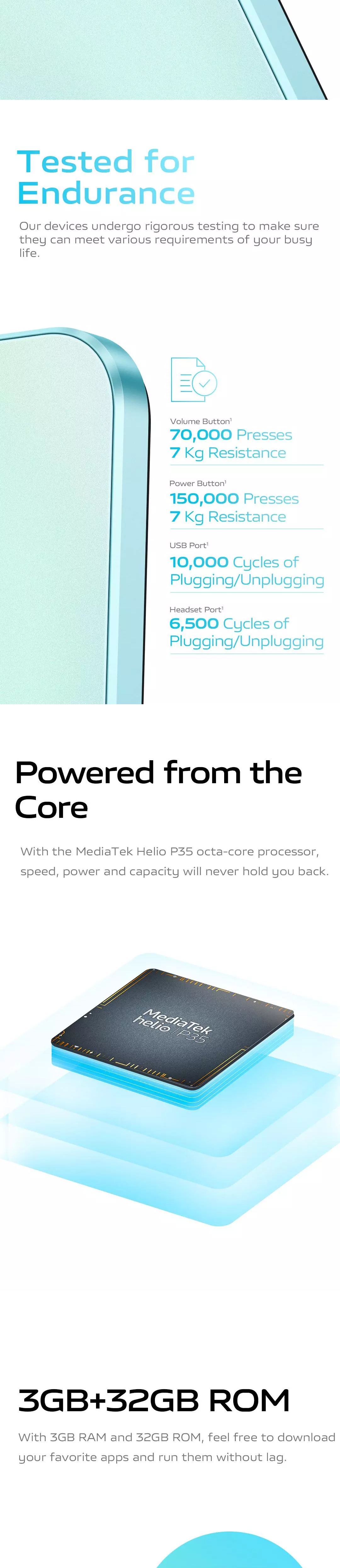 • 3GB RAM and 32GB internal storage